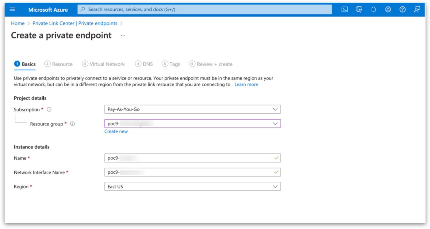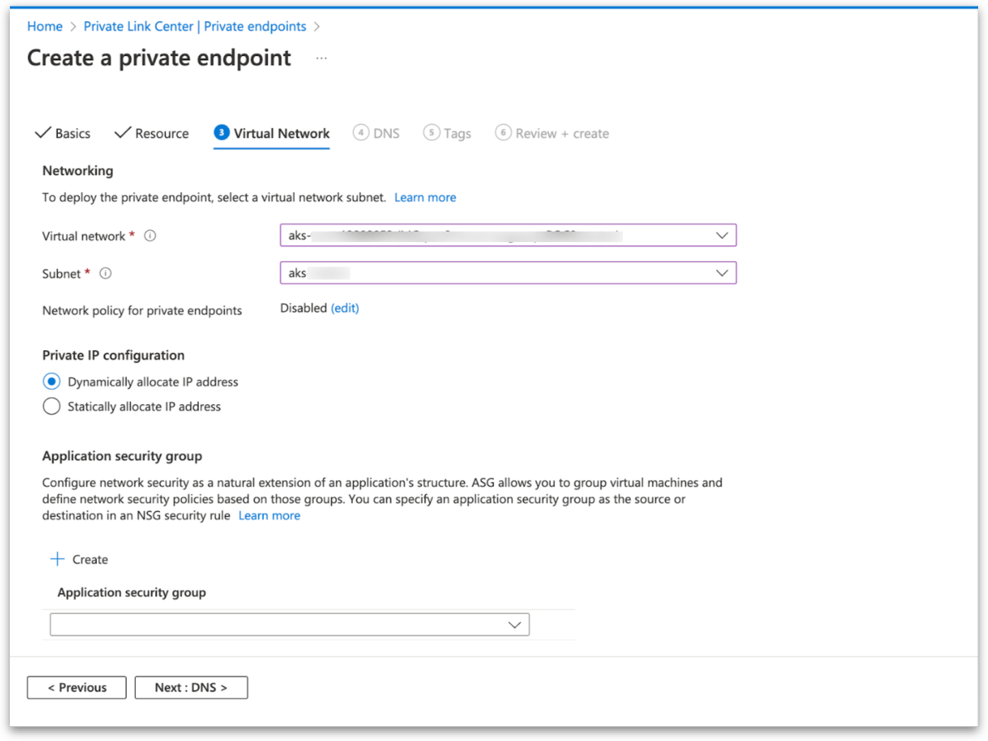 - IPv4 address: <private-endpoint-IP> (note down from the Azure Portal)