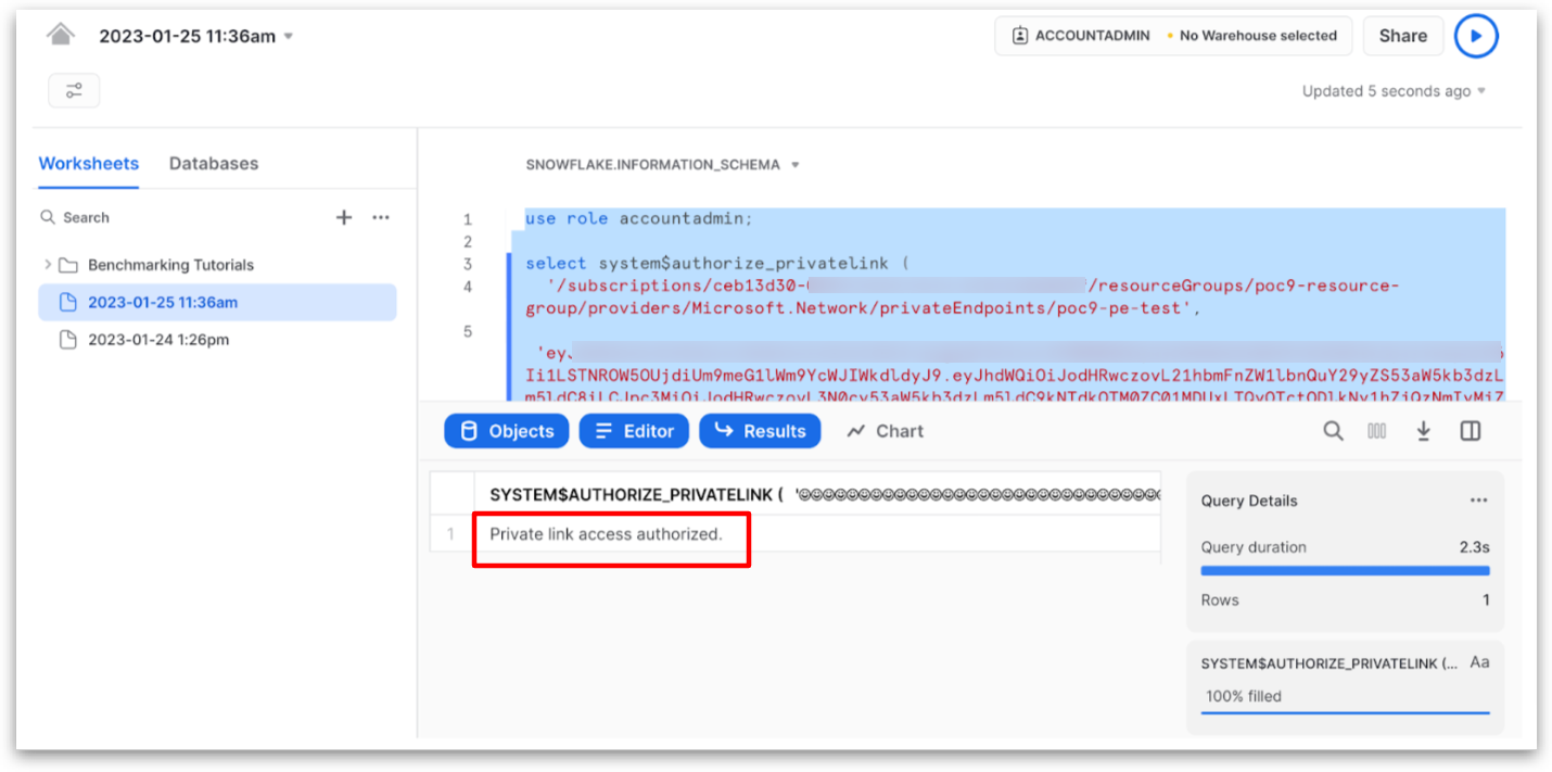 - Obtain PrivateLink resource ID and accessToken from Snowflake console
