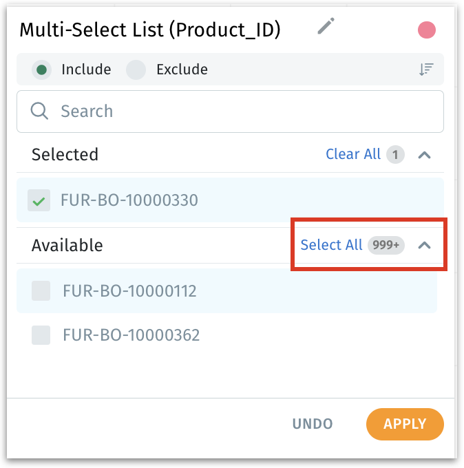 - When you're dealing with more than 1000 filter values in a control filter, the total count will now be displayed as '999+' instead of the exact count.